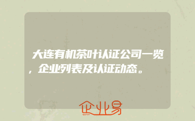 - 大连有机茶叶认证公司一览,企业列表及认证动态。