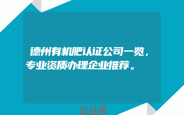 - 德州有机肥认证公司一览,专业资质办理企业推荐。
