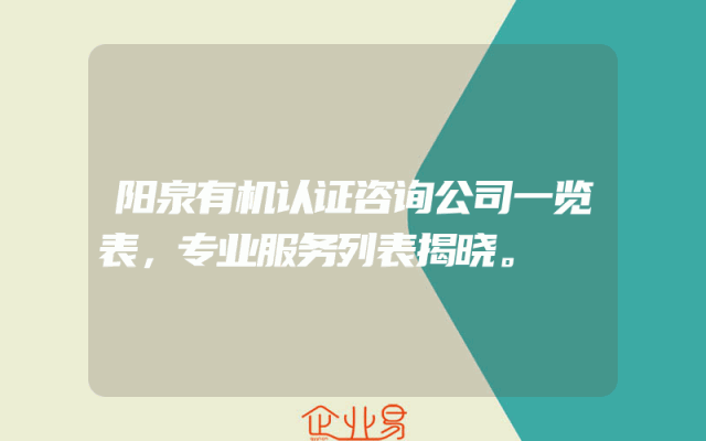 - 阳泉有机认证咨询公司一览表,专业服务列表揭晓。