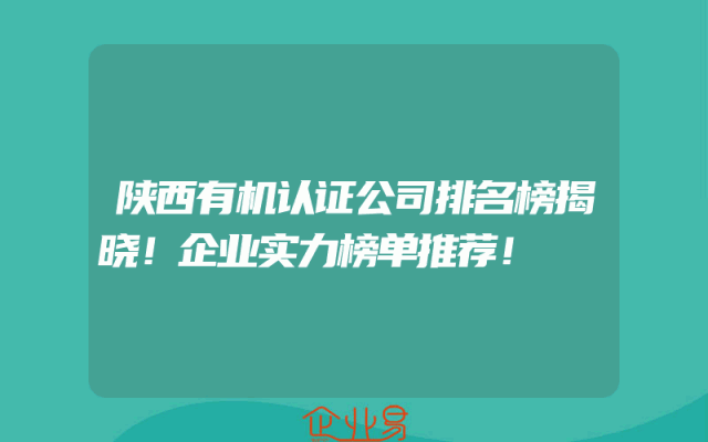 - 陕西有机认证公司排名榜揭晓!企业实力榜单推荐!