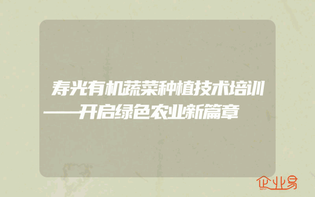 - 寿光有机蔬菜种植技术培训——开启绿色农业新篇章