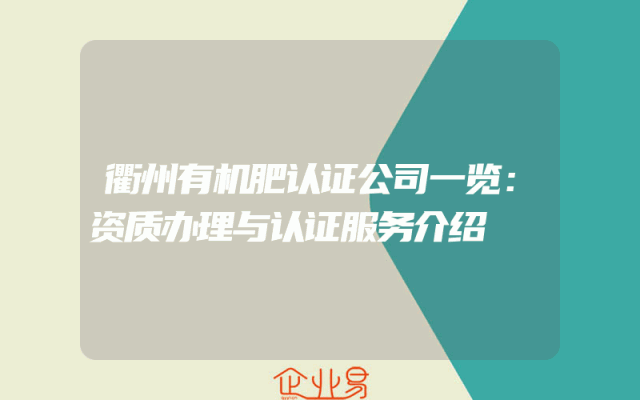 - 衢州有机肥认证公司一览:资质办理与认证服务介绍