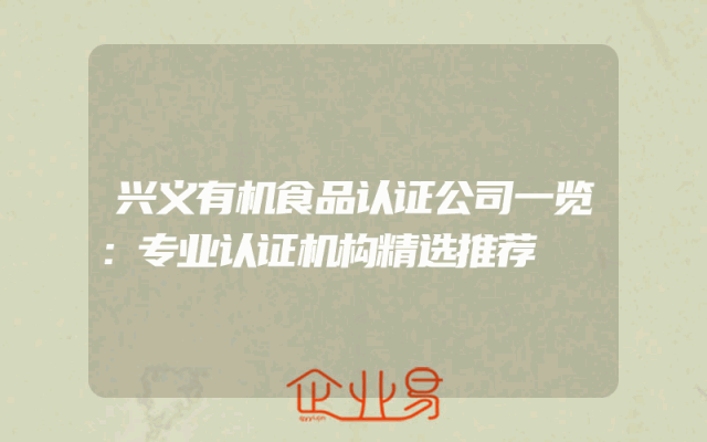 - 兴义有机食品认证公司一览:专业认证机构精选推荐