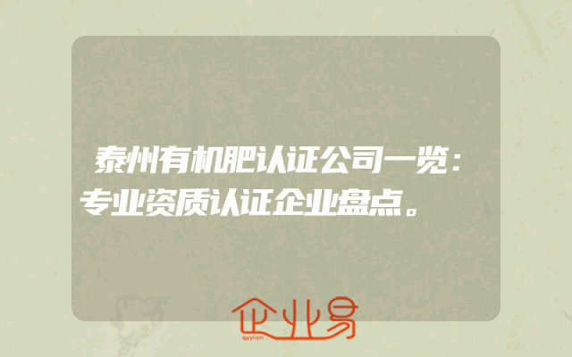 - 泰州有机肥认证公司一览:专业资质认证企业盘点。