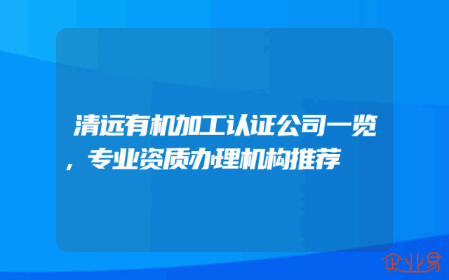 - 清远有机加工认证公司一览,专业资质办理机构推荐