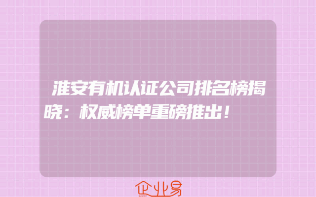 - 淮安有机认证公司排名榜揭晓:权威榜单重磅推出!