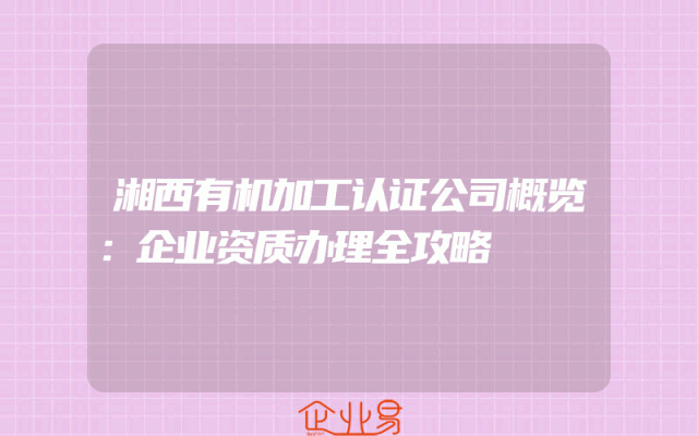 - 湘西有机加工认证公司概览:企业资质办理全攻略