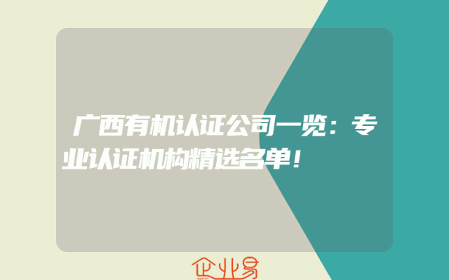 - 广西有机认证公司一览:专业认证机构精选名单!