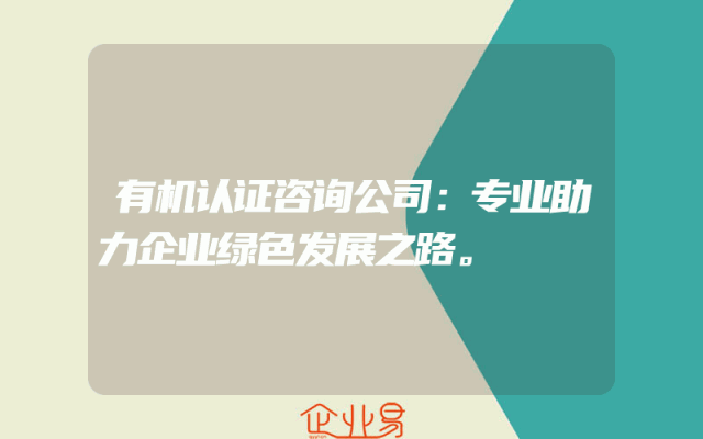 - 有机认证咨询公司:专业助力企业绿色发展之路。