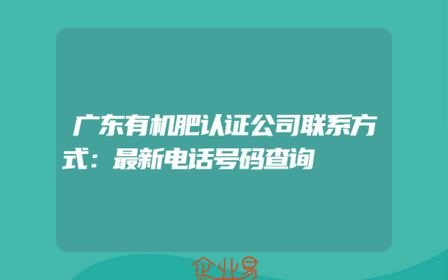 - 广东有机肥认证公司联系方式:最新电话号码查询