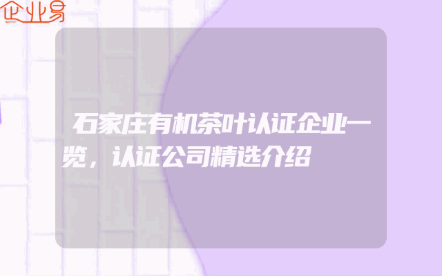- 石家庄有机茶叶认证企业一览,认证公司精选介绍