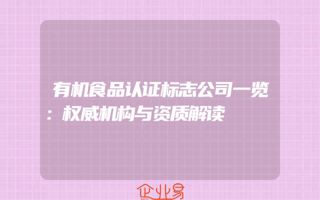 - 有机食品认证标志公司一览:权威机构与资质解读