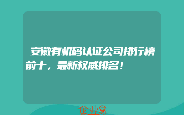 - 安徽有机码认证公司排行榜前十,最新权威排名!