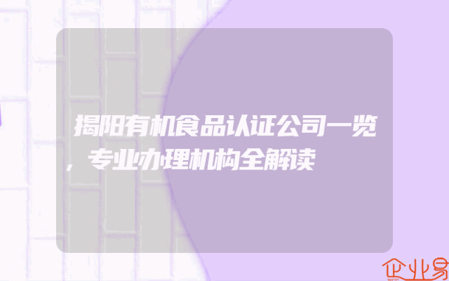 - 揭阳有机食品认证公司一览,专业办理机构全解读
