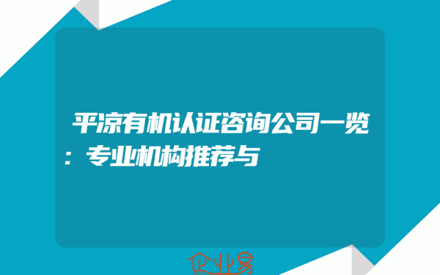 - 平凉有机认证咨询公司一览:专业机构推荐与