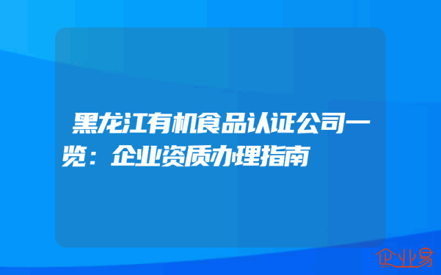 - 黑龙江有机食品认证公司一览:企业资质办理指南