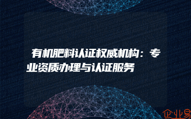 - 有机肥料认证权威机构:专业资质办理与认证服务