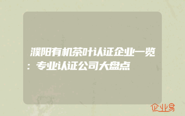 - 濮阳有机茶叶认证企业一览:专业认证公司大盘点