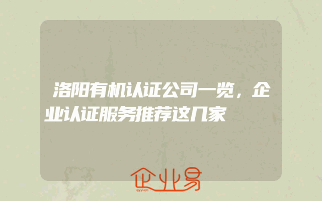 - 洛阳有机认证公司一览,企业认证服务推荐这几家