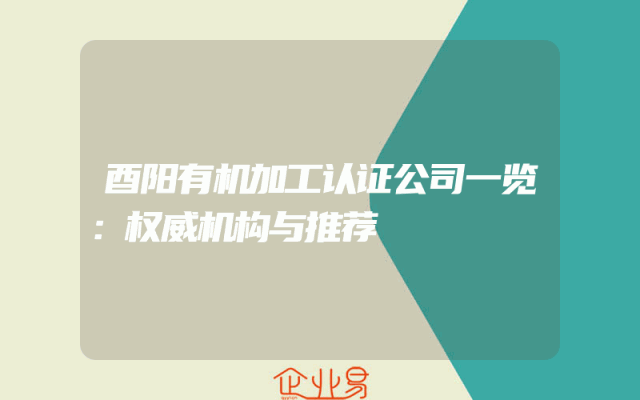 - 酉阳有机加工认证公司一览:权威机构与推荐