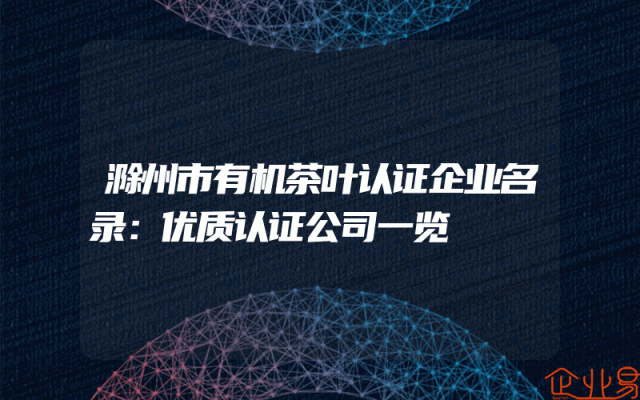 - 滁州市有机茶叶认证企业名录:优质认证公司一览