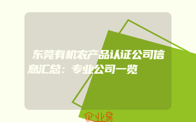 - 东莞有机农产品认证公司信息汇总:专业公司一览