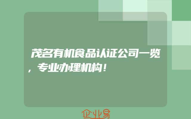- 贺州有机茶叶认证公司信息揭秘:认证公司列表。