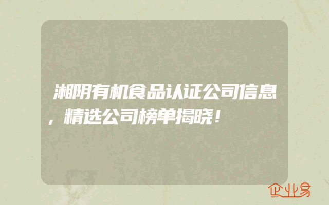 - 湘阴有机食品认证公司信息,精选公司榜单揭晓!
