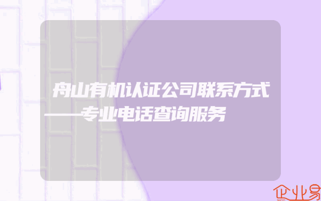- 舟山有机认证公司联系方式——专业电话查询服务
