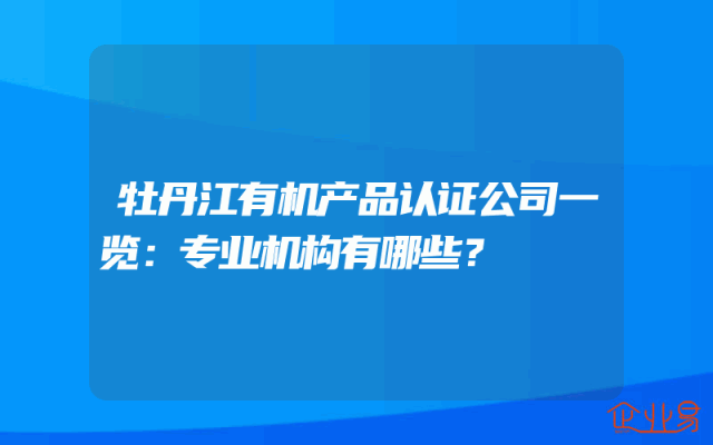 - 牡丹江有机产品认证公司一览:专业机构有哪些?