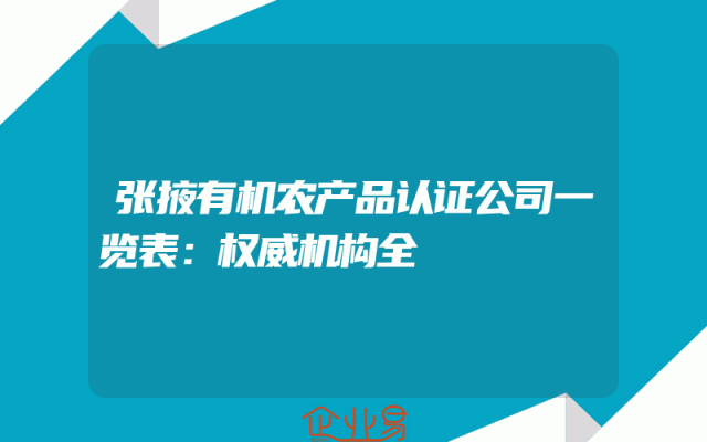- 张掖有机农产品认证公司一览表:权威机构全