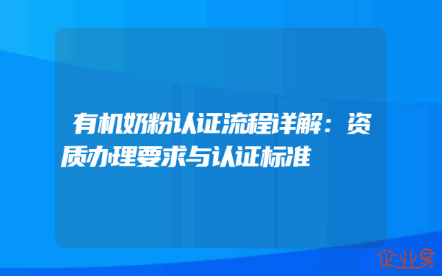 - 有机奶粉认证流程详解:资质办理要求与认证标准
