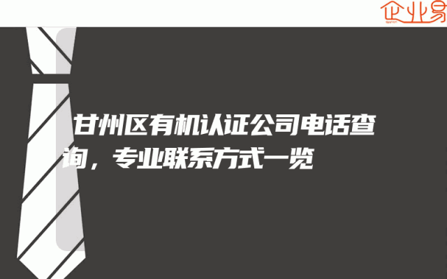 - 甘州区有机认证公司电话查询,专业联系方式一览