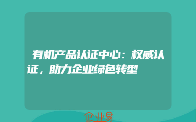 - 有机产品认证中心:权威认证,助力企业绿色转型