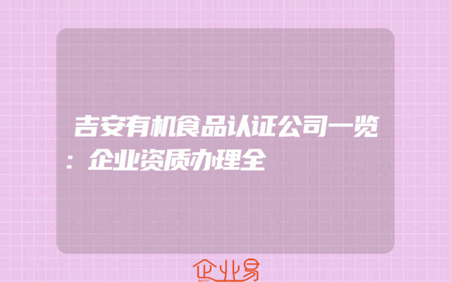 - 吉安有机食品认证公司一览:企业资质办理全