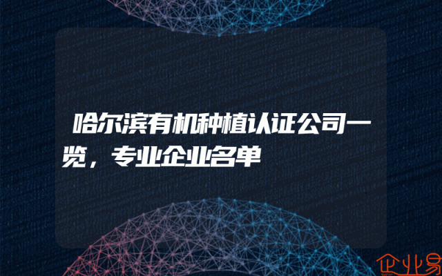 - 哈尔滨有机种植认证公司一览,专业企业名单