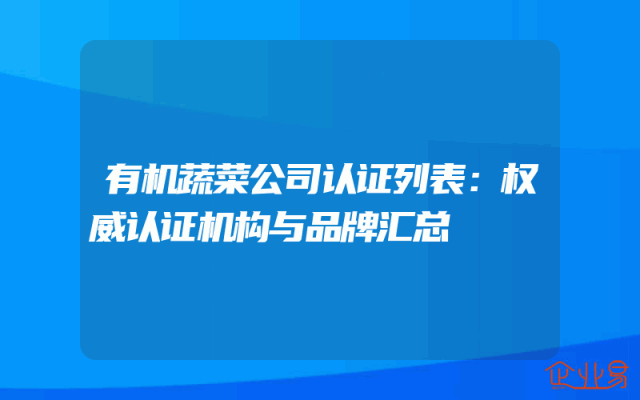 - 有机蔬菜公司认证列表:权威认证机构与品牌汇总