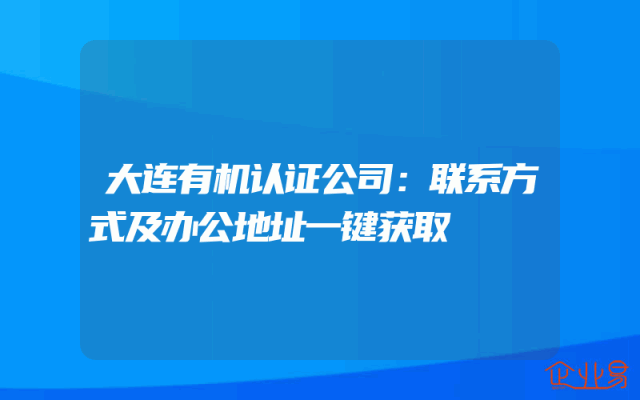 - 大连有机认证公司:联系方式及办公地址一键获取