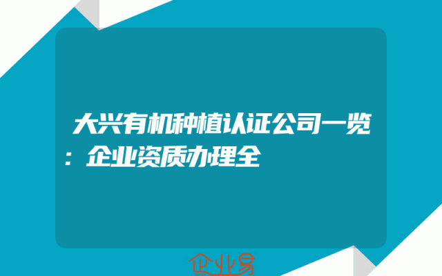 - 大兴有机种植认证公司一览:企业资质办理全