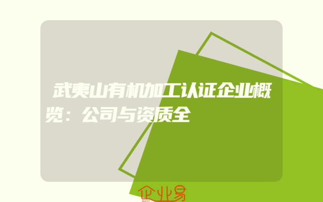 - 武夷山有机加工认证企业概览:公司与资质全