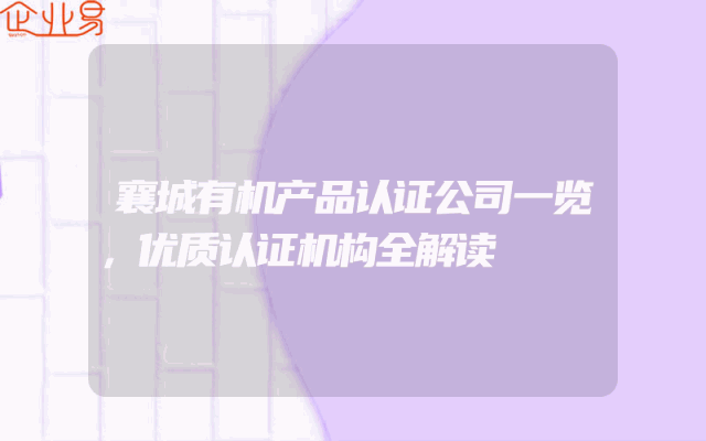 - 襄城有机产品认证公司一览,优质认证机构全解读