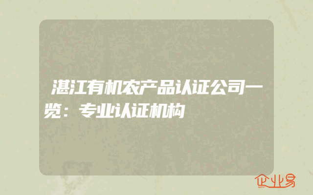 - 湛江有机农产品认证公司一览:专业认证机构