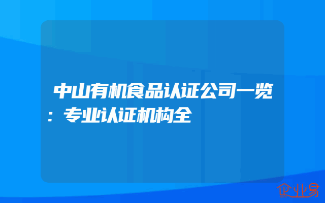 - 中山有机食品认证公司一览:专业认证机构全