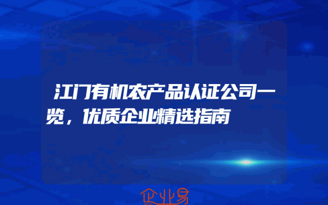 - 江门有机农产品认证公司一览,优质企业精选指南