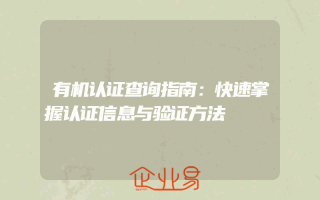 - 有机认证查询指南:快速掌握认证信息与验证方法