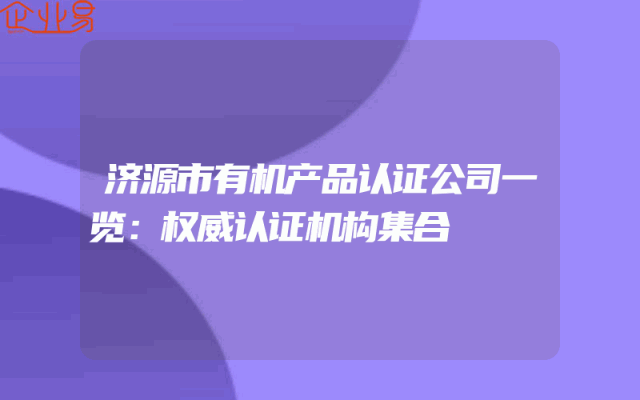 - 济源市有机产品认证公司一览:权威认证机构集合