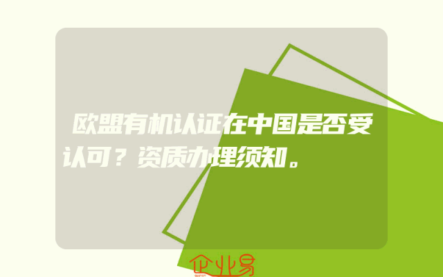 - 欧盟有机认证在中国是否受认可?资质办理须知。