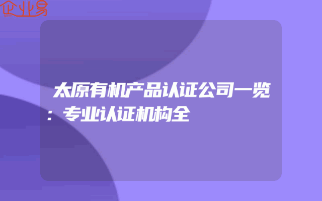 - 太原有机产品认证公司一览:专业认证机构全