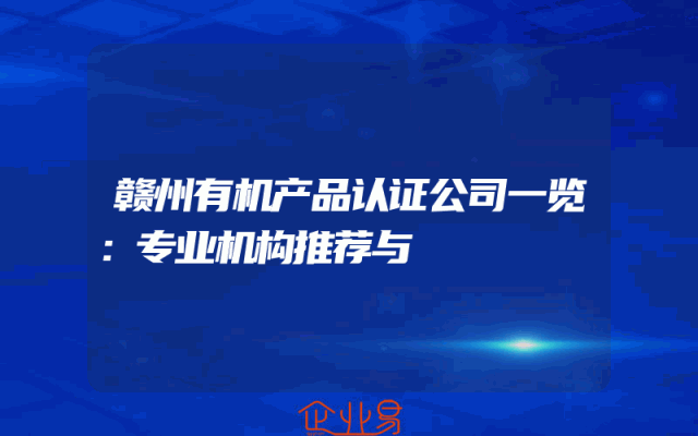 - 赣州有机产品认证公司一览:专业机构推荐与