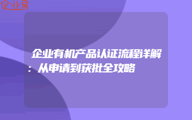 - 企业有机产品认证流程详解:从申请到获批全攻略